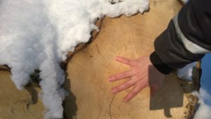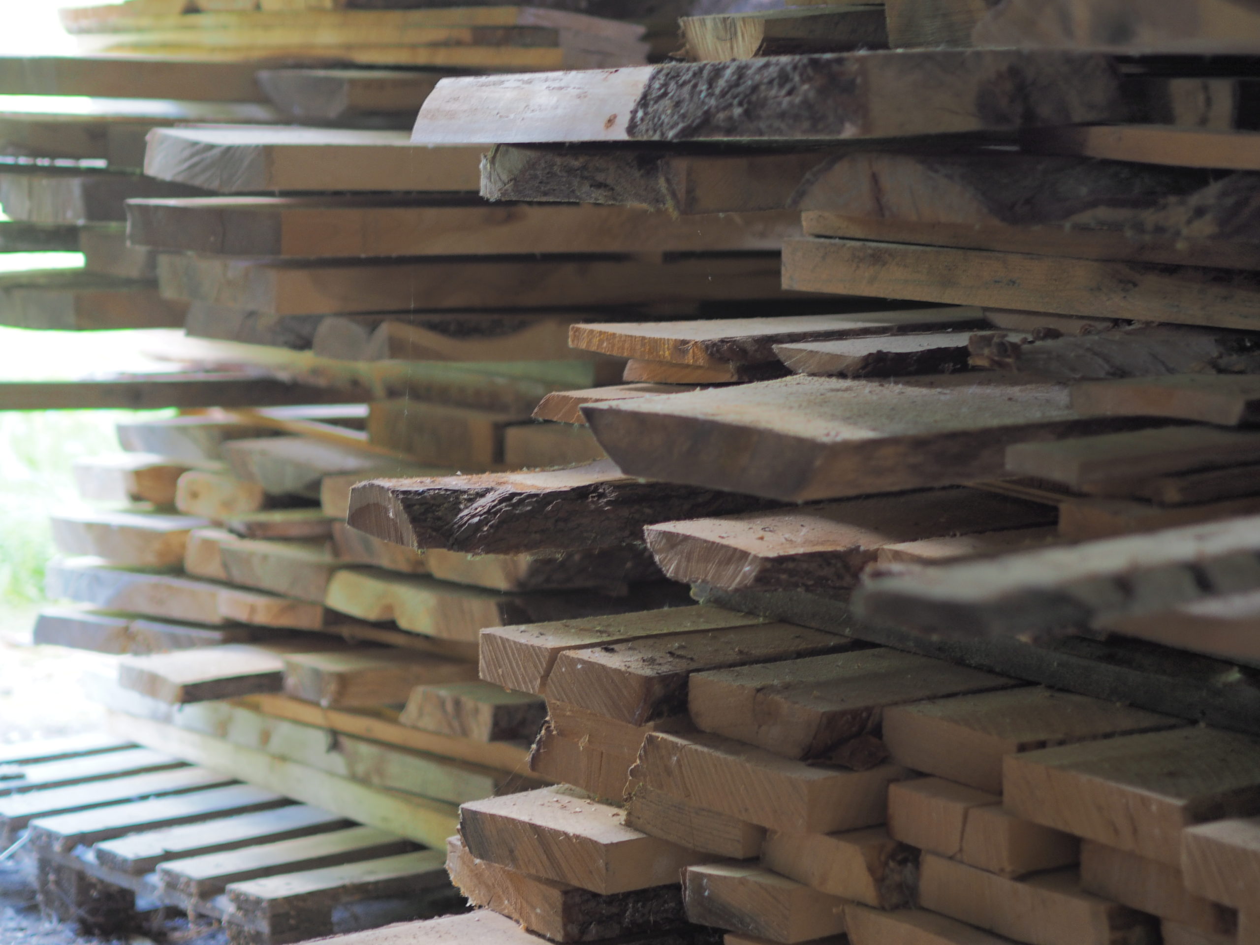 Hankin materiaalin pääosin tukkeina. Ensimmäiset koivutukit pelastin joutumasta polttopuiksi ja pikkuhiljaa niitä olen kertyttänyt useamman vuoden ajalta. Tämän varaston kasoja on käytetty moneen projektiin. Varastosta kerään pienemmän määrän verstaalle, jotta materiaali vielä kuivuu ennen kuin projekti alkaa. Kuvissa on pihlajaa, tuomea, raitaa, harmaa- ja tervaleppää, koivua, saarnea, terijoen salavaa ja kuusta. Tällaisesta kasasta niiden eroja…